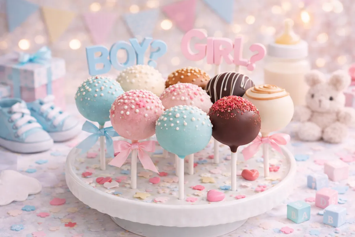 Feiere die bevorstehende Ankunft eines neuen Familienmitglieds mit individuell gestalteten Cake Pops in Rosa, Blau oder neutralen Farben. Perfekt als süße Überraschung oder Tischdekoration!